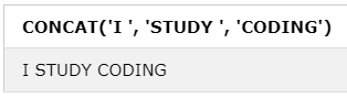 CONCAT('I ', 'STUDY ', 'CODING');