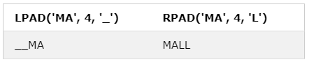 RPAD('MA', 4, 'L');