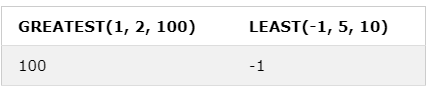 GREATEST(1, 2, 100),