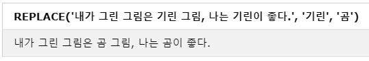 REPLACE('내가 그린 그림은 기린 그림, 나는 기린이 좋다.', '기린', '곰');