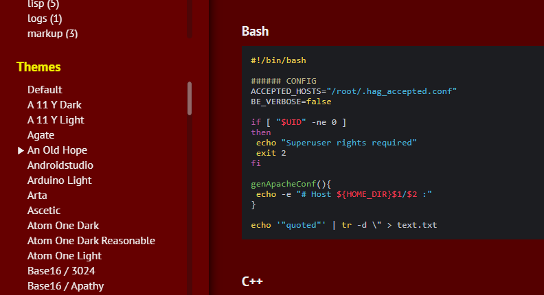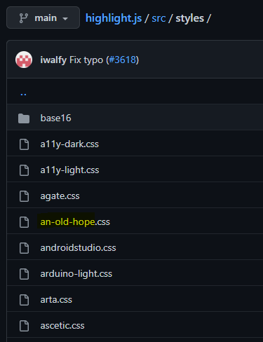 - 🔗highlight.js에는 다양한 테마들이 있는데 그 중 맘에 드는 것을 선택하면 된다. 나는 'An Old Hope'를 골랐다.