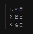 - 목차를 띄우기 위해서 글자 크기가 제목1, 2이어야 한다.