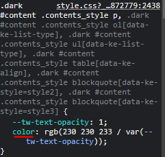 - 다크 모드 (흰 색 글씨) : color: rgb(230 230 233 / var(--tw-text-opacity));
