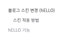 한 때 벨로그를 사용할지, 티스토리를 사용할지 고민했었다. 솔직히 디자인적으로 봤을 때는 벨로그였는데 길들어지기는 티스토리에 길들여졌었고 편의성 때문에 결국 티스토리를 사용하게 되었다. 벨로그가 맘에 들었던 것 중 하나는 목차가 있는 것이다. 벨로그 같은 디자인이 있으면 참 좋겠다고 생각했는데 최근에 'hELLO'라는 스킨을 알게 되었고 맘에 쏙 드는 디자인이어서 적용해보려고 한다.